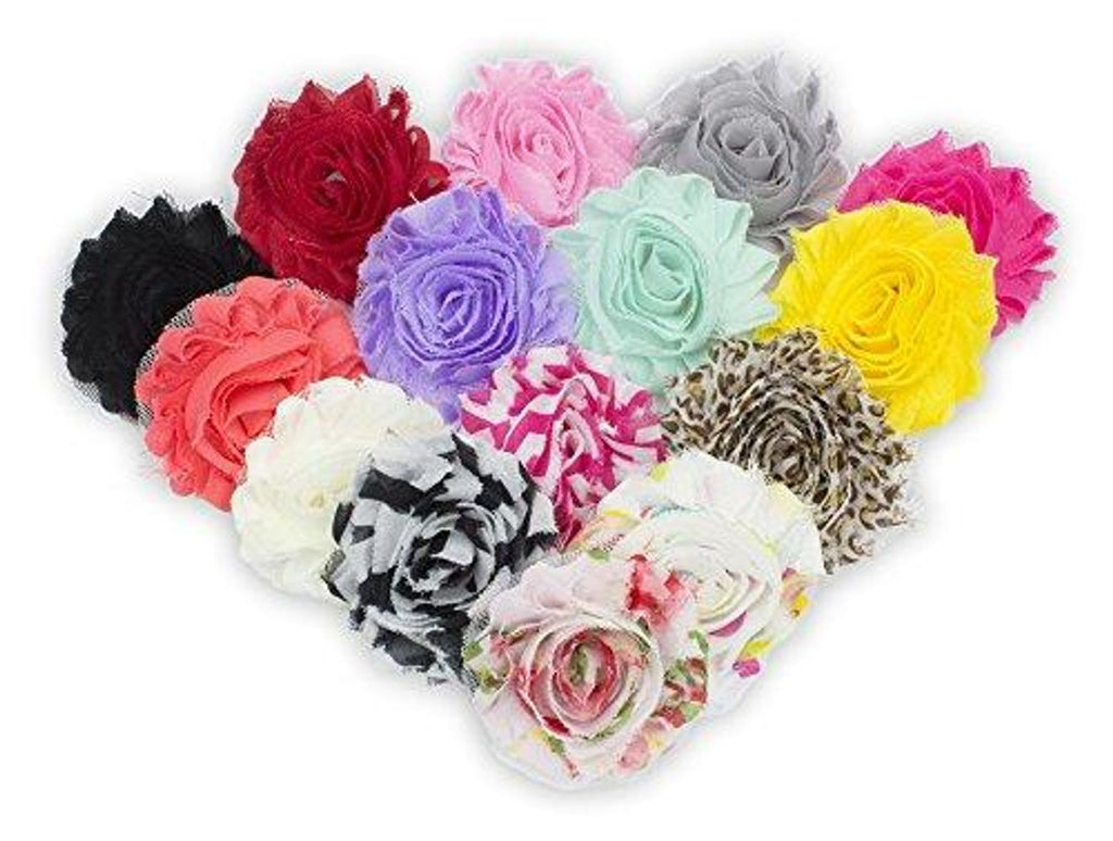 MCHPI Store JLIKA (30 pieces) 15 Pairs Shabby Flowers - Chiffon Fabric Roses - 2.5" - Colors as pictured
