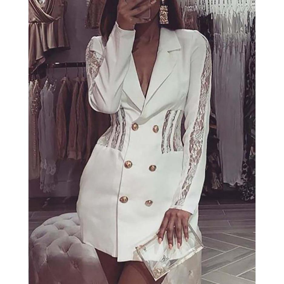 MCHPI Store Women Patchwork Lace Trimmed Blazer Dress