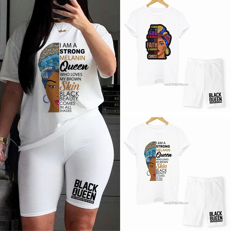 MCHPI Store Black Queen Women Print T Shirts Melanin Two Pieces Set Sexy