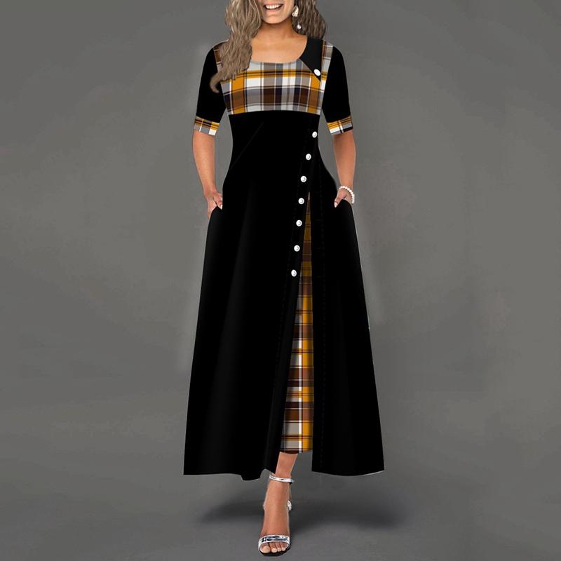 MCHPI Store Mid-Calf High Printed Elegant Tunic Pleated Midi Dress